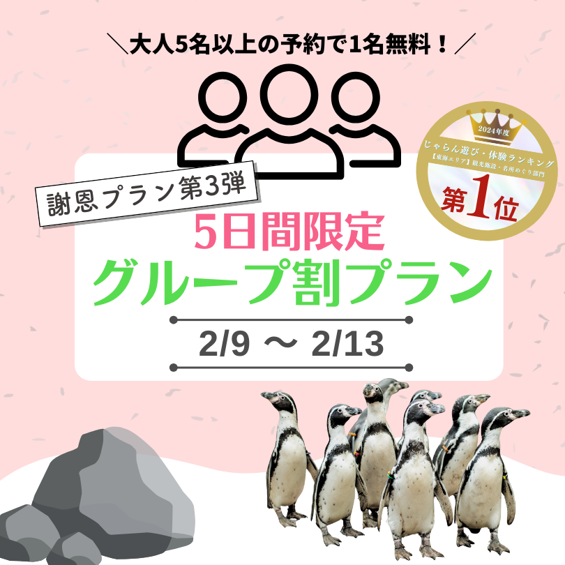 じゃらん遊び・体験ランキング2024 東海エリア(観光施設・名所巡り部門)での『第1位』受賞を記念して実施した【特別謝恩プラン第3弾・平日限定グループ割プラン】が、多くの反響を受け、このたび2月9日(月)~13日(金)までの期間限定で再登場します。