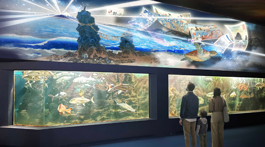 伊勢参りのはじまりとされる「浜参宮」や、海とともに歩んできた伊勢の歴史・信仰を、大型水槽と映像・音楽が融合した空間で体感できる特別展示です。